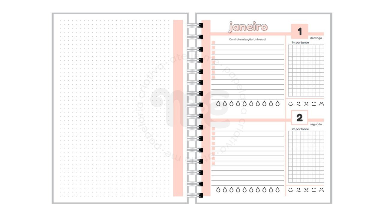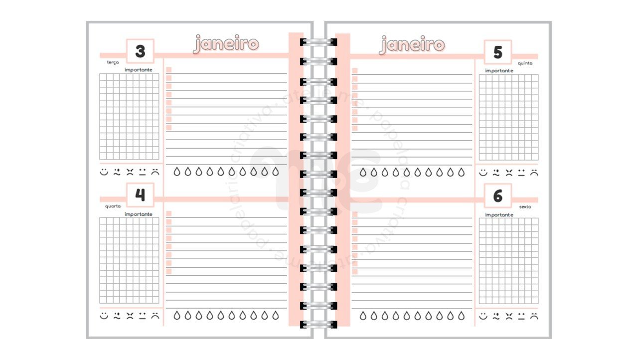 A agenda contém 228 páginas versãopermanente e sendo 2 dias por página