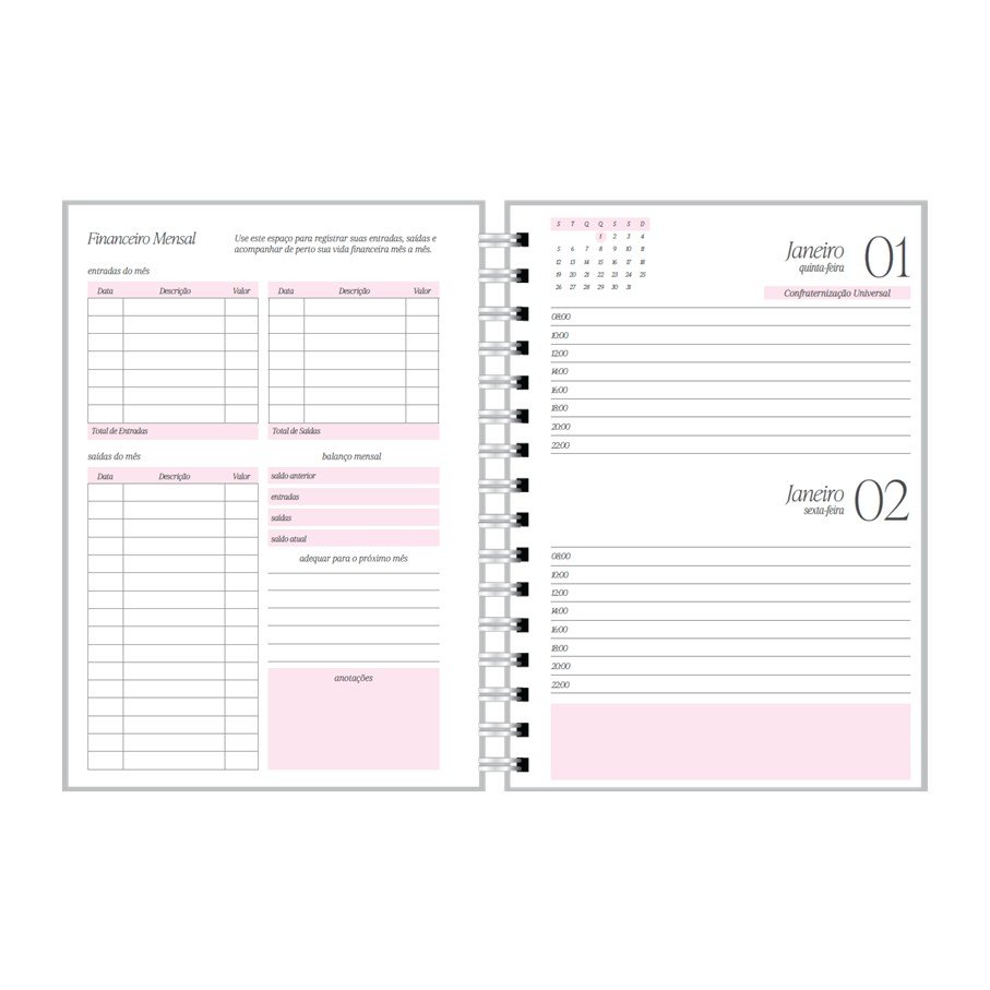 A agenda 2026 contém 226 páginas na versão datada.
