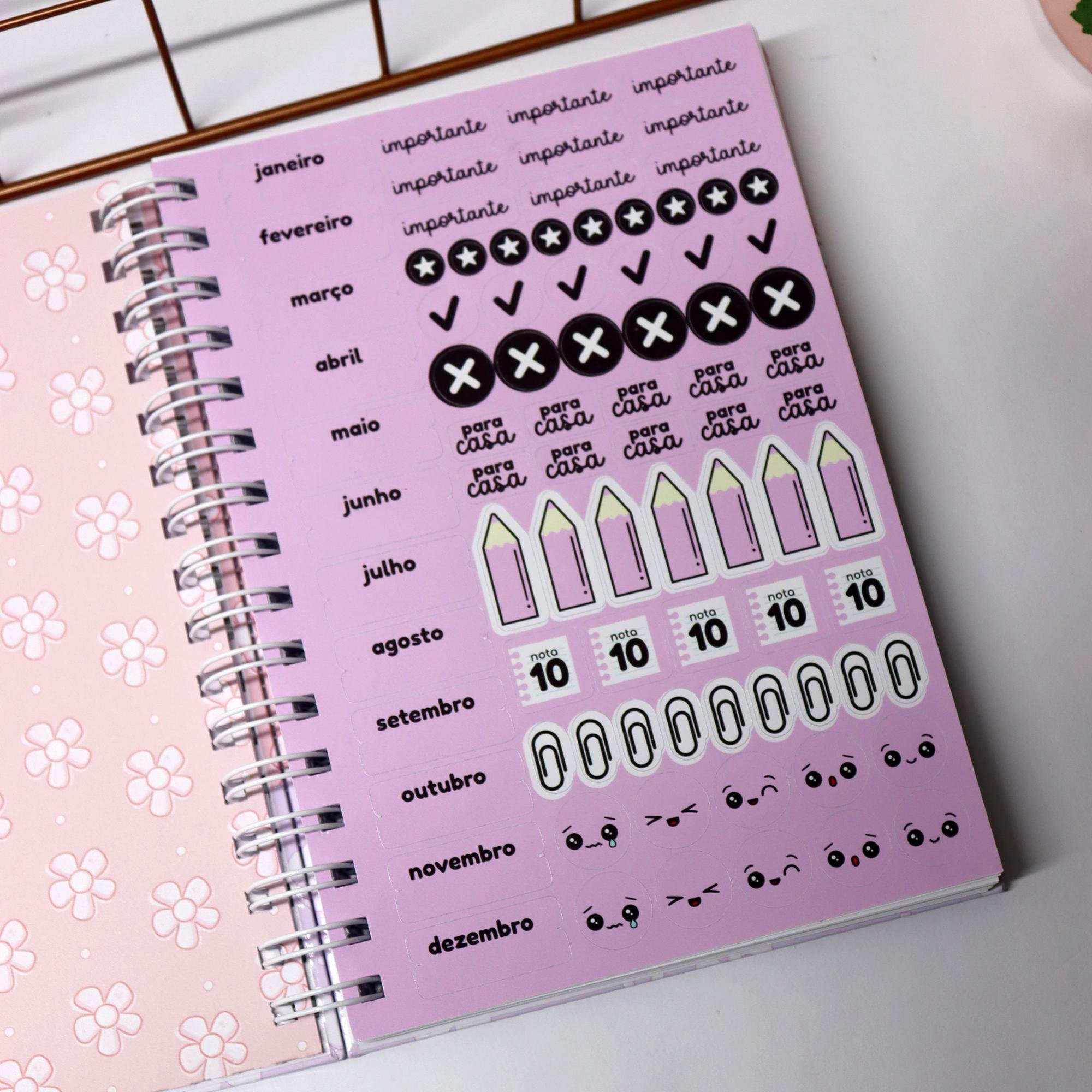 São 224 páginas para seu filho organizar todo o ano escolar.