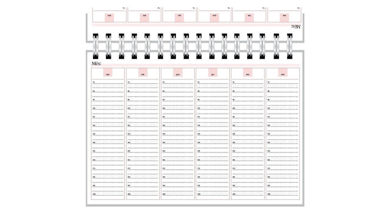O caderno de agendamentos semanal básico contém: