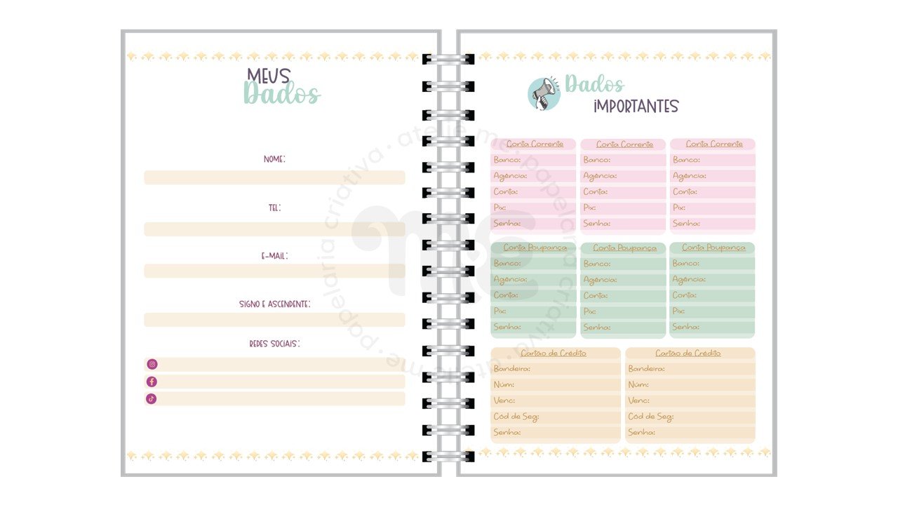 Então vem que tem um caderno prático, simples, fácil de preencher, frases para motivar, dicas de como usar e é lindo, lindo, lindo!!!