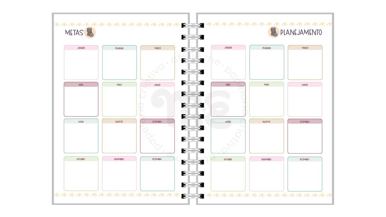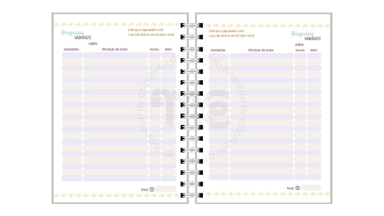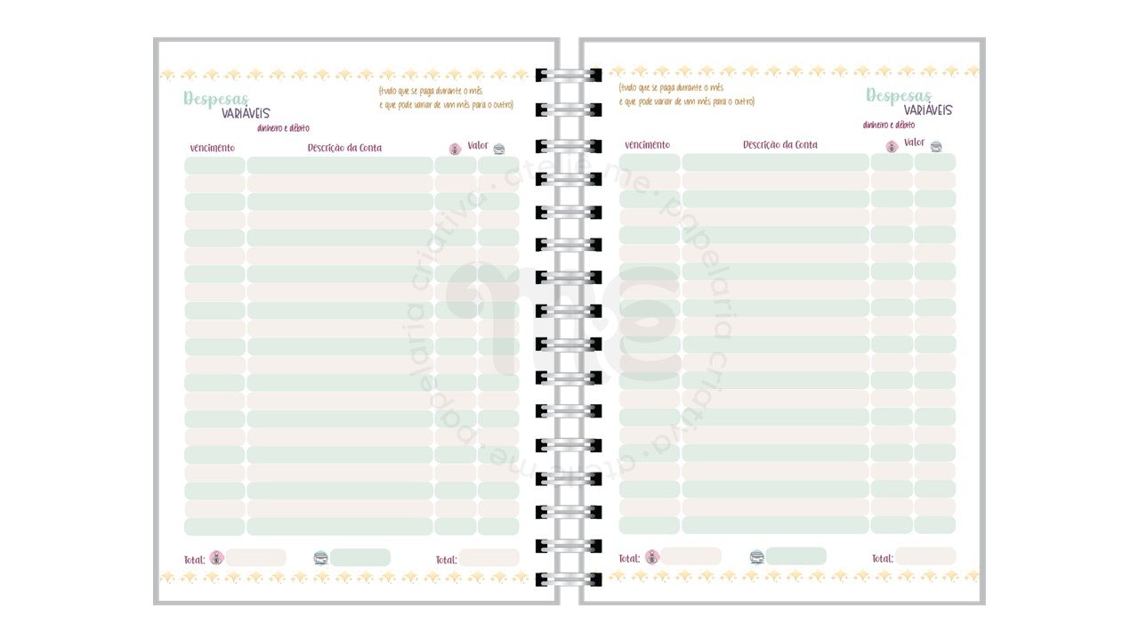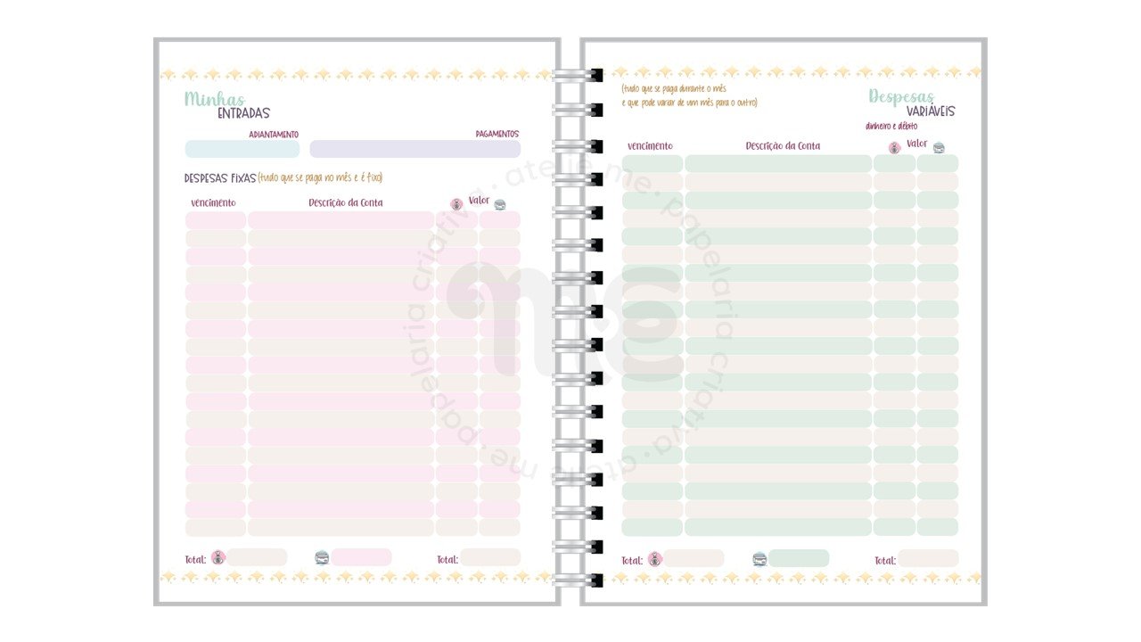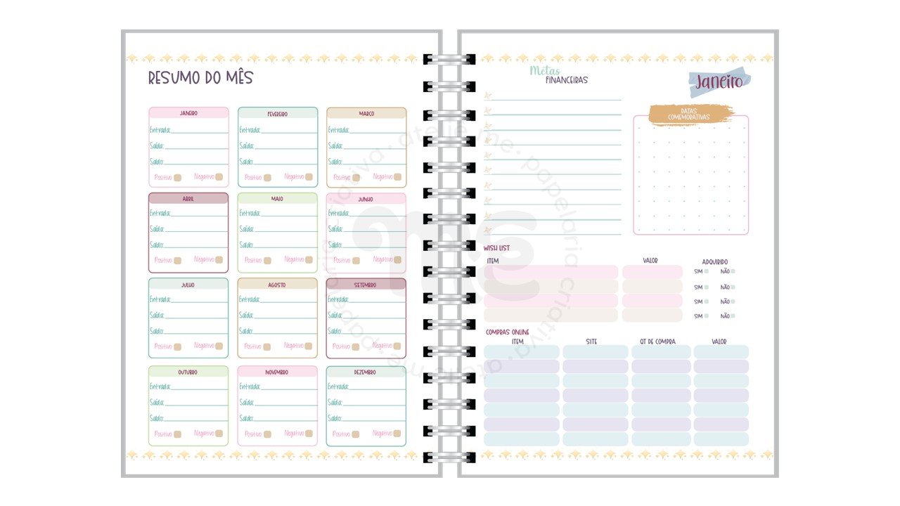 O caderno de controle financeiro possui 124 páginas, na versão permanente não datada.