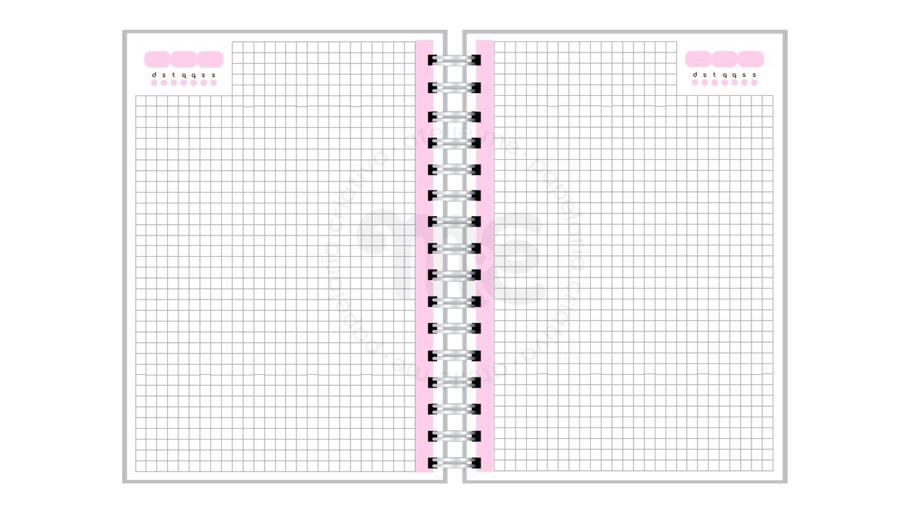 O caderno quadiculado contém: