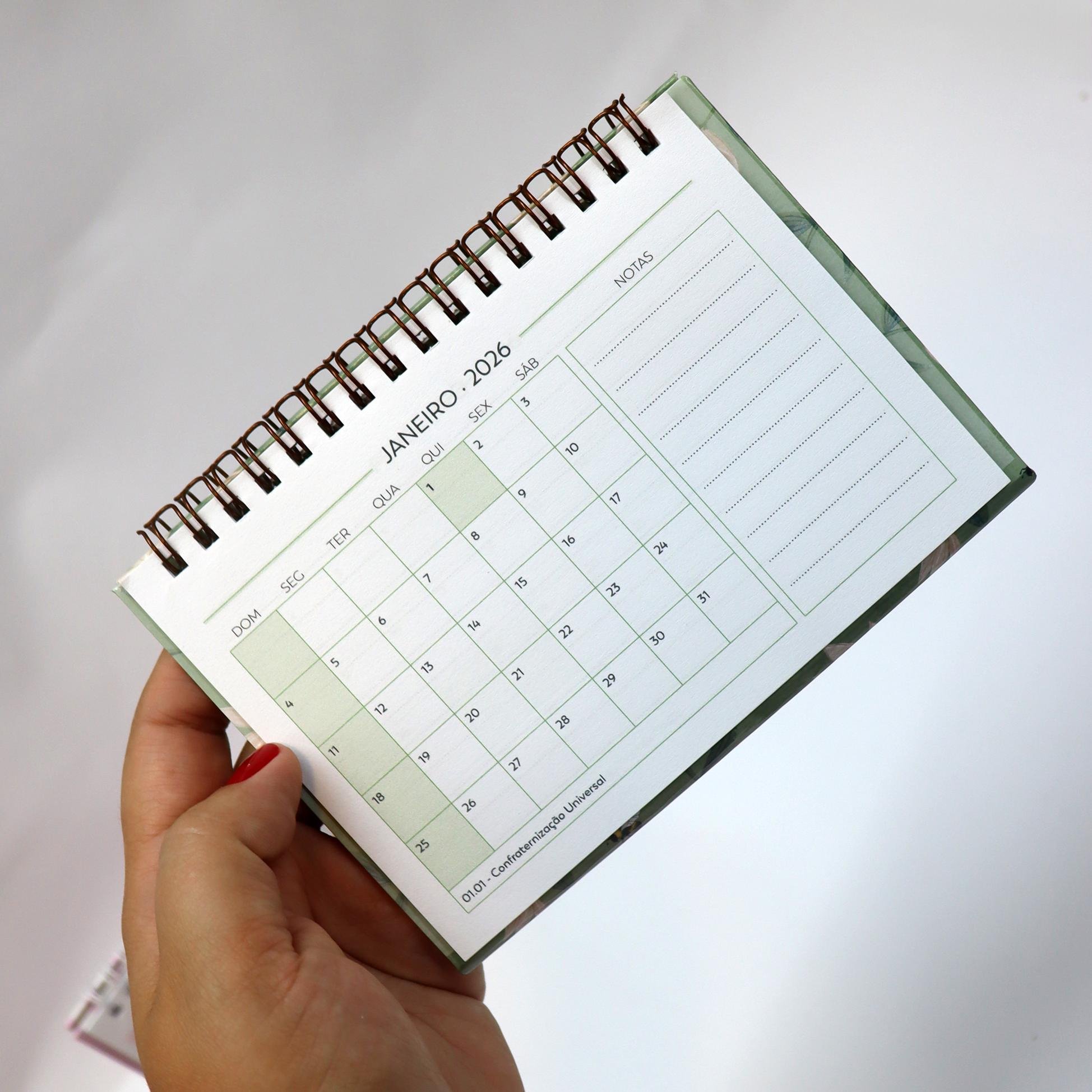 Deixe seu novo ano ainda mais encantador com este lindo e fofinho calendário de mesa 2026! No tamanho A6 (aproximadamente 15×10 cm), ele é perfeito para decorar sua mesa de trabalho, home office ou aquele cantinho especial da casa.