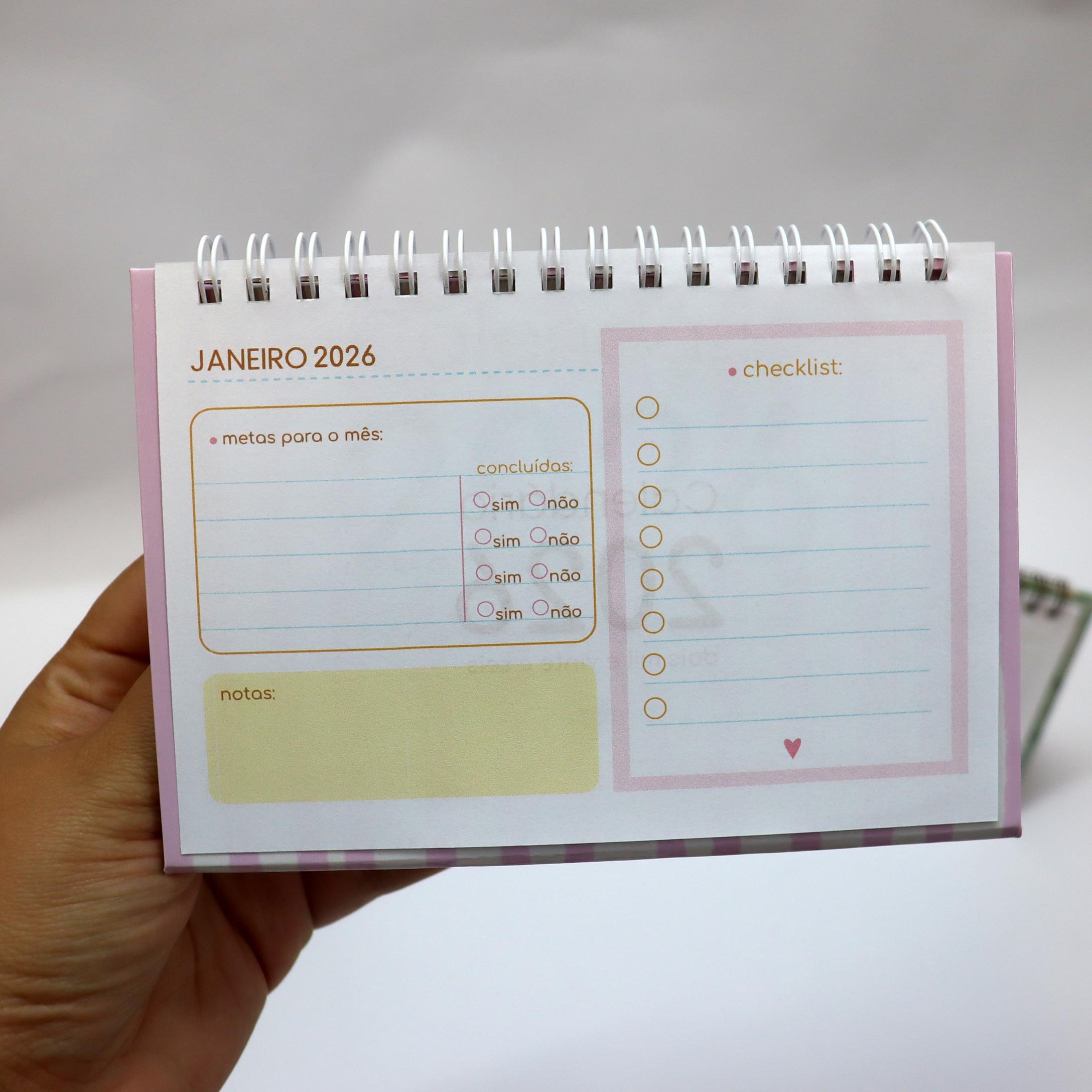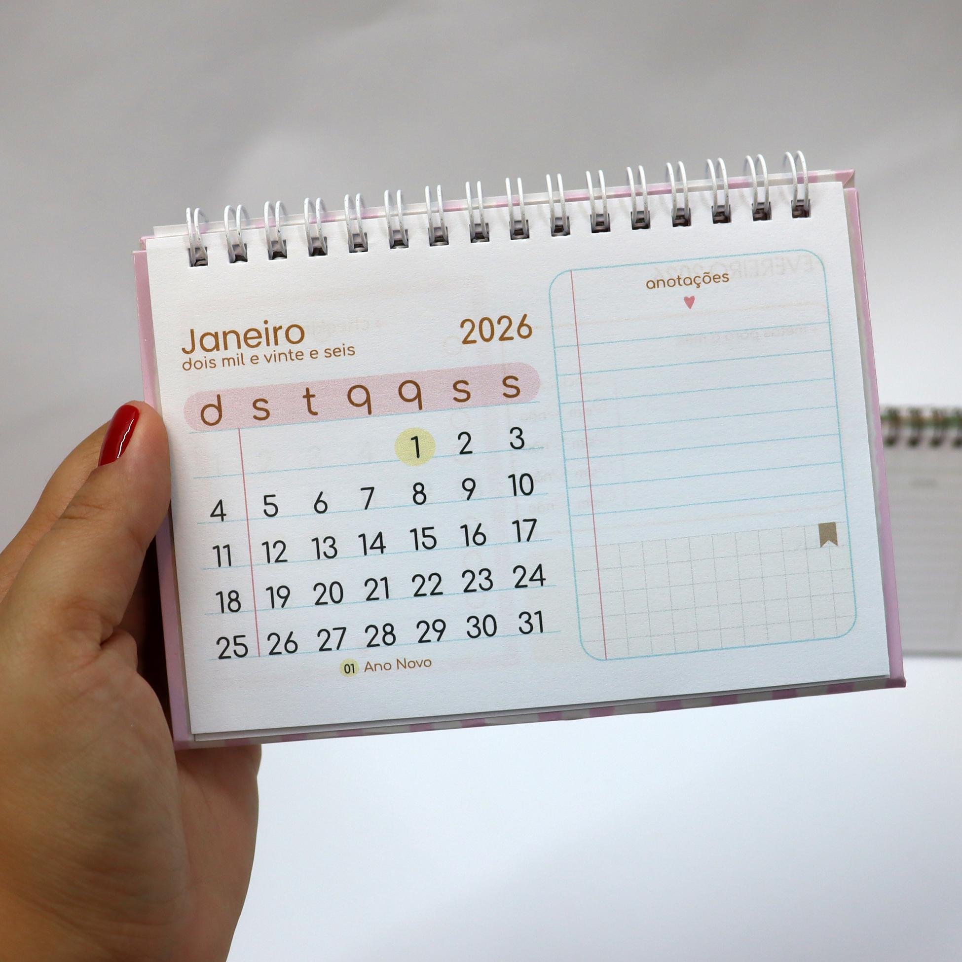 ✨ Organize seu ano com charme e estilo com o Calendário de Mesa 2026 A6 — o acessório perfeito para quem ama fofura e praticidade!