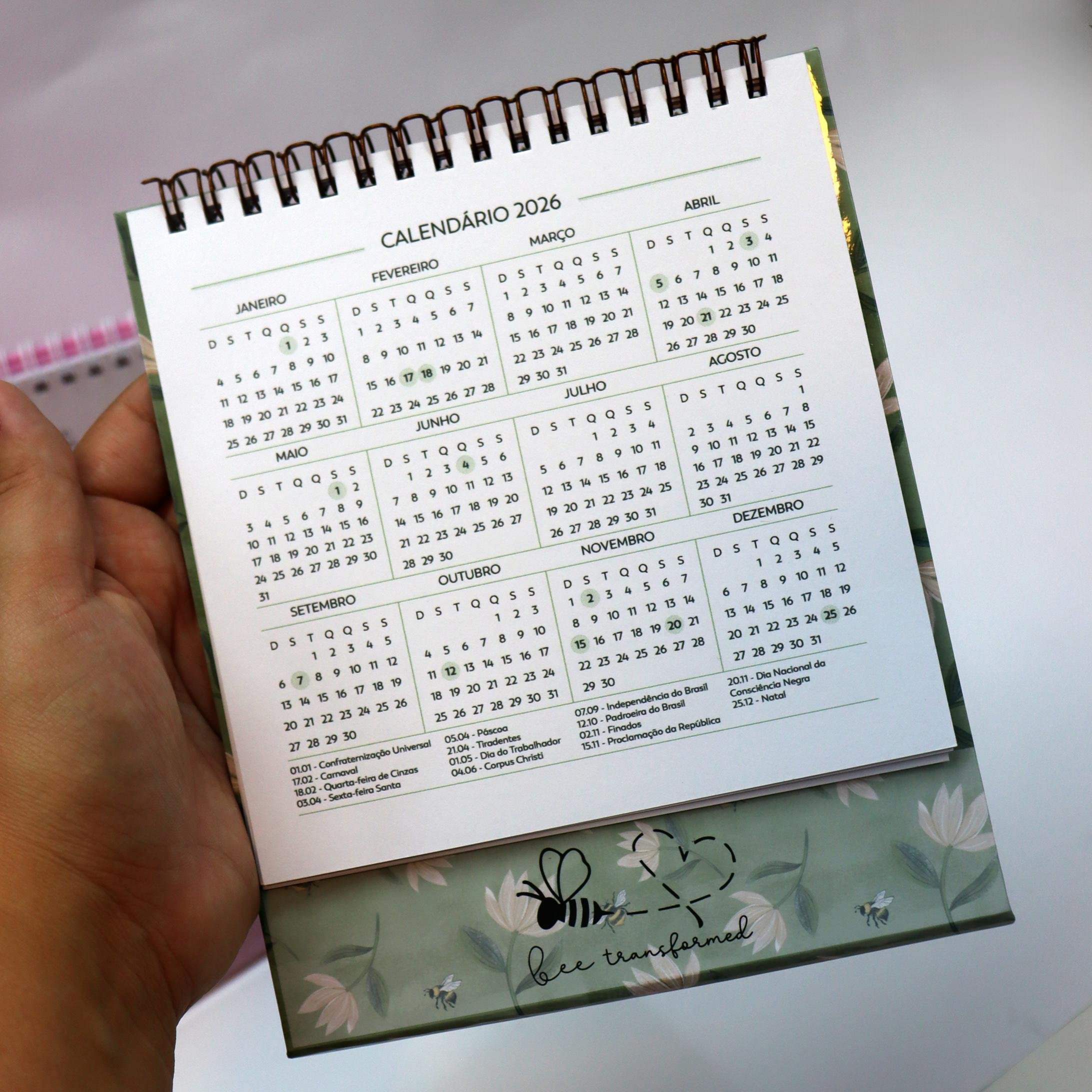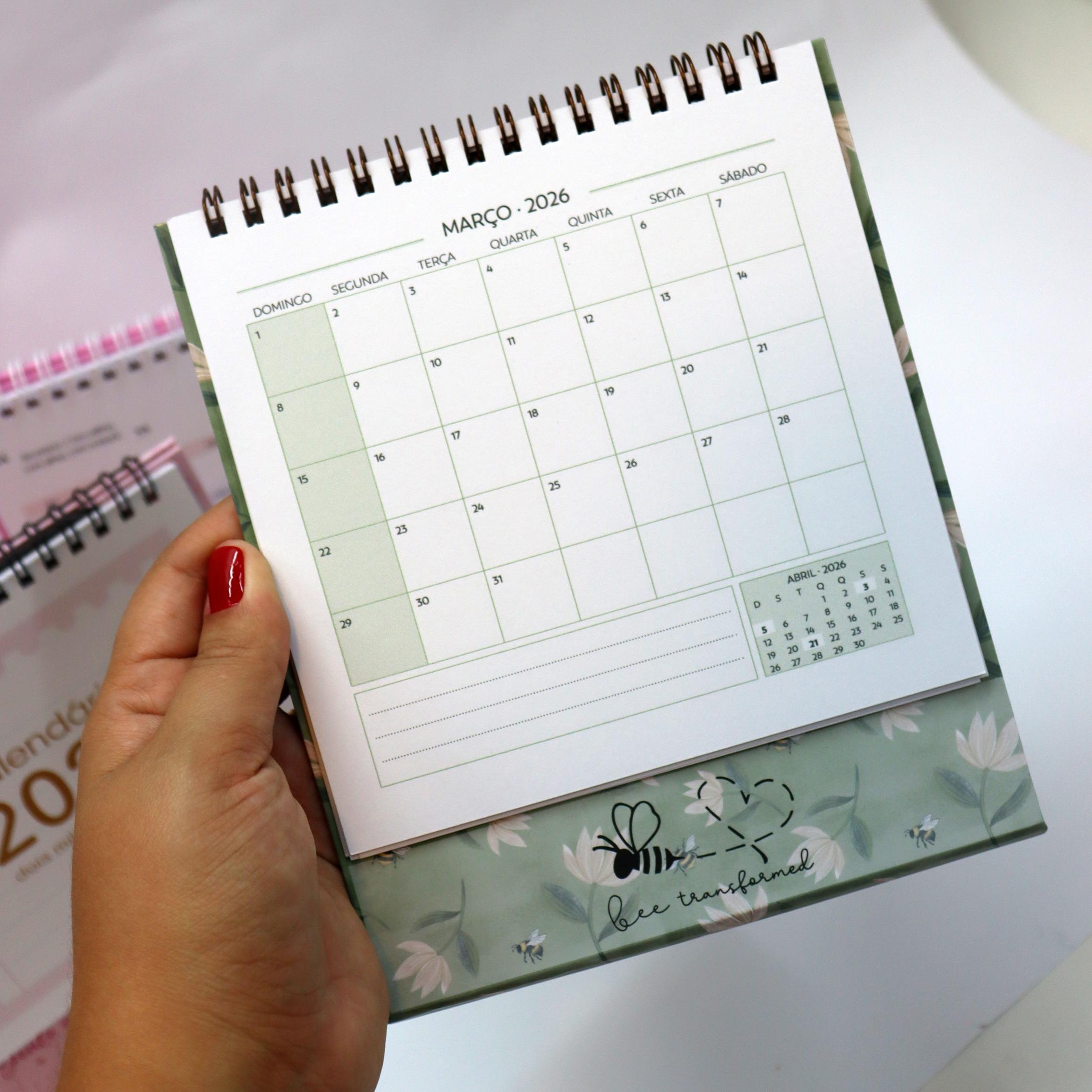 Deixe seu novo ano ainda mais encantador com este lindo e fofinho calendário de mesa 2026! No tamanho A6 (aproximadamente 15×15 cm), ele é perfeito para decorar sua mesa de trabalho, home office ou aquele cantinho especial da casa.