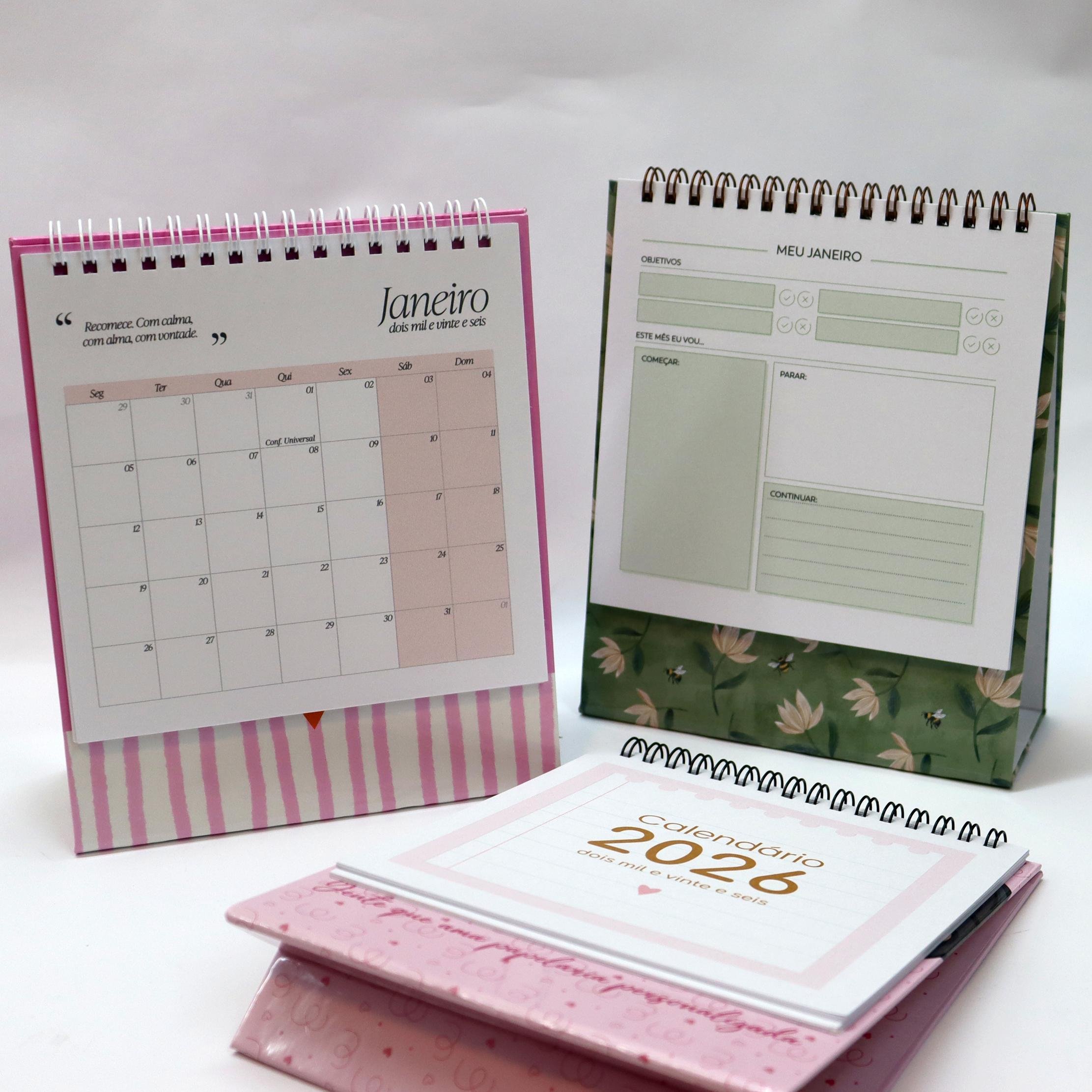 ✨ Organize seu ano com charme e estilo com o Calendário de Mesa 2026 A6 — o acessório perfeito para quem ama fofura e praticidade!