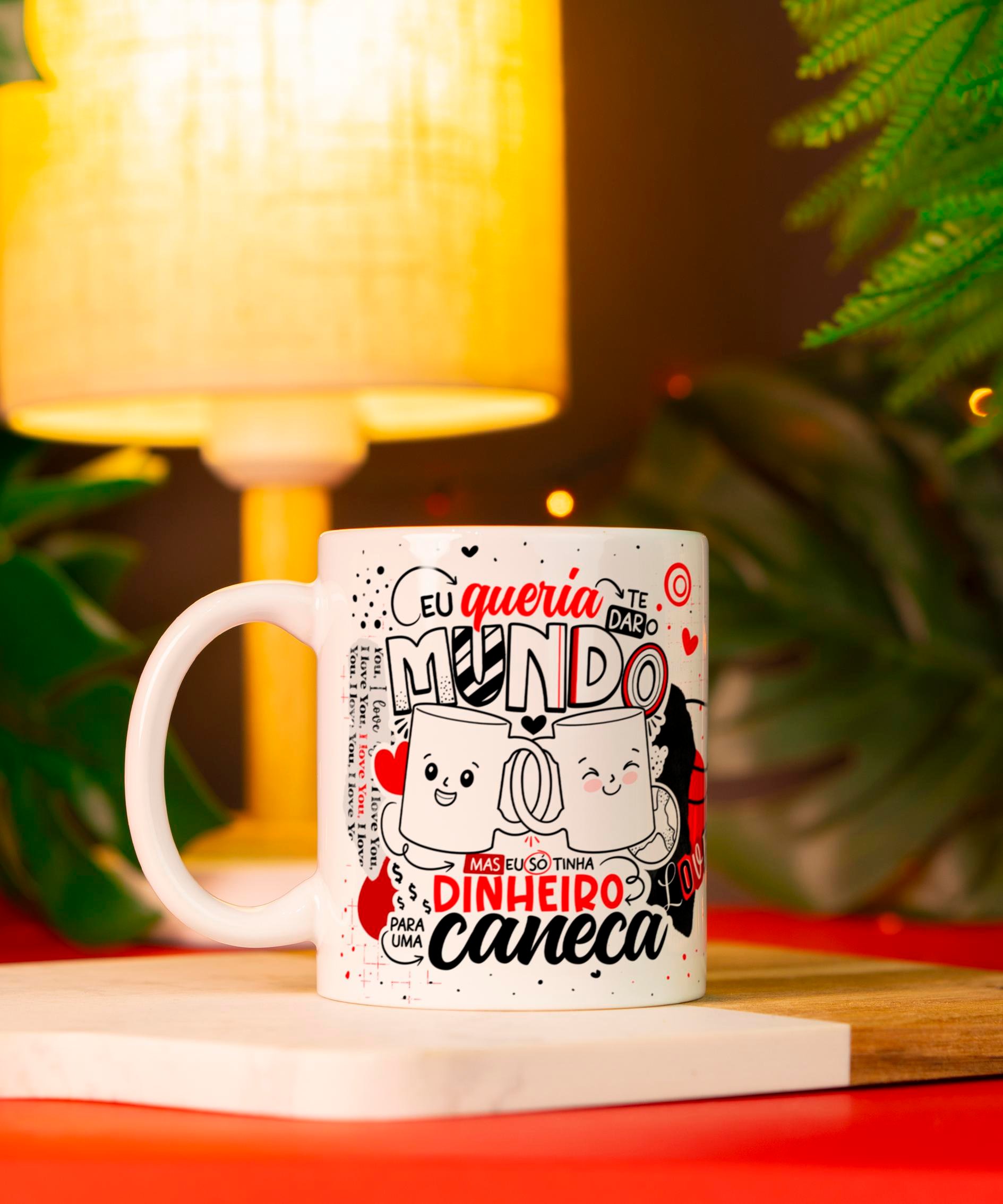- Exterior da caneca: conforme personalização a ser definida, após o pagamento.