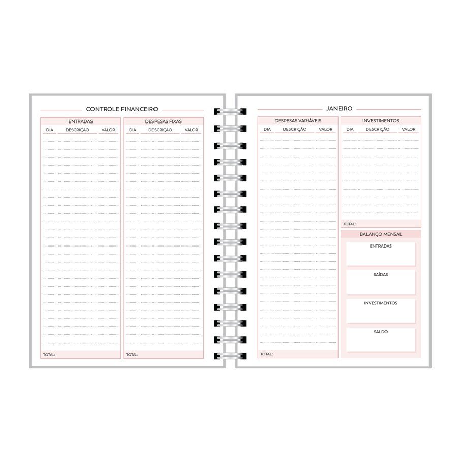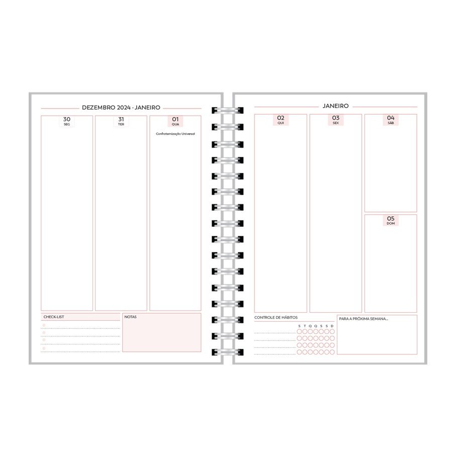 - Planejamento semanal em duas páginas.