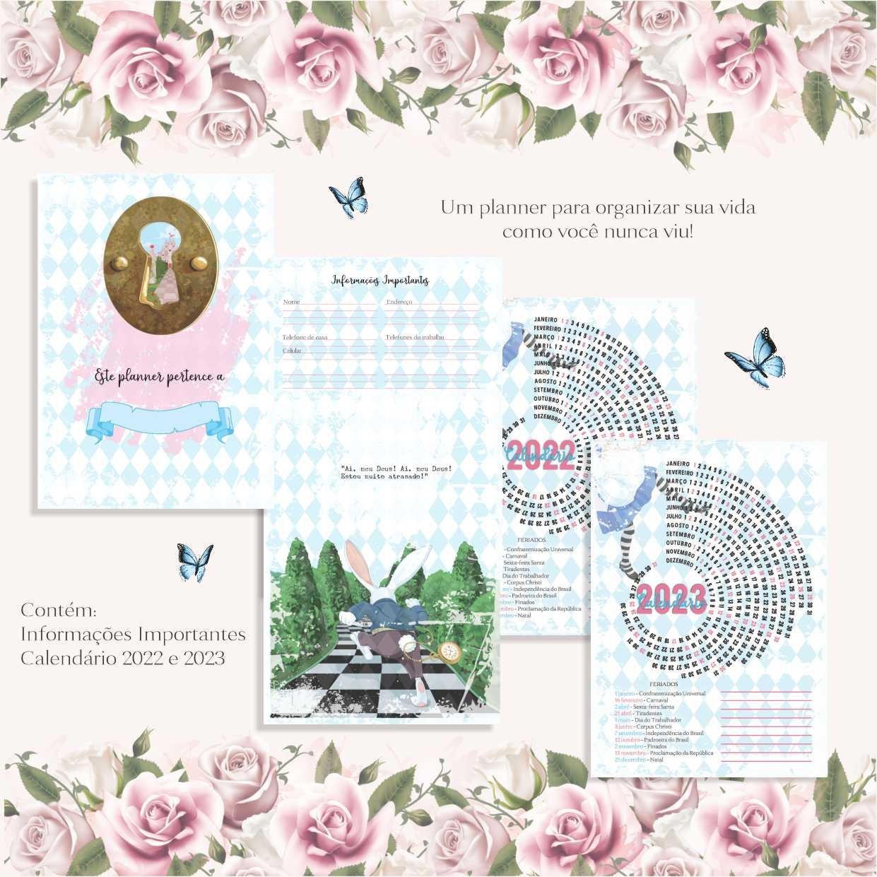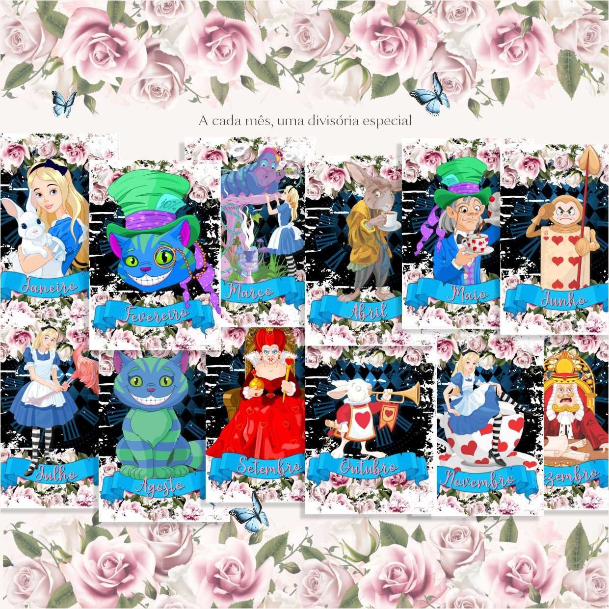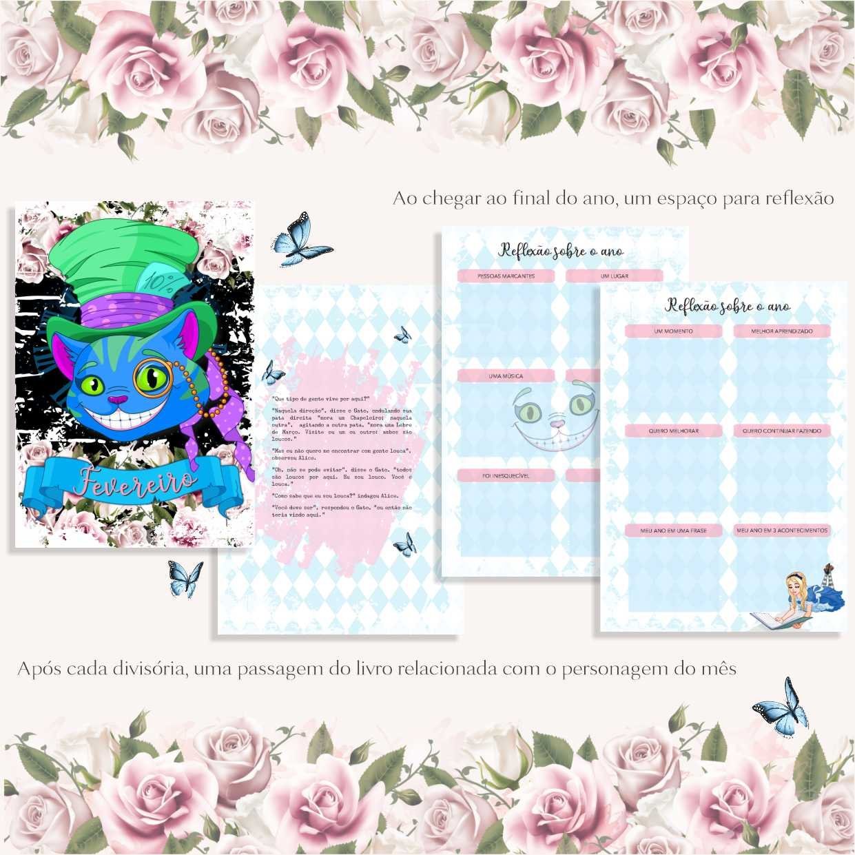 O lindo planner da alice no país das maravilhas contém: