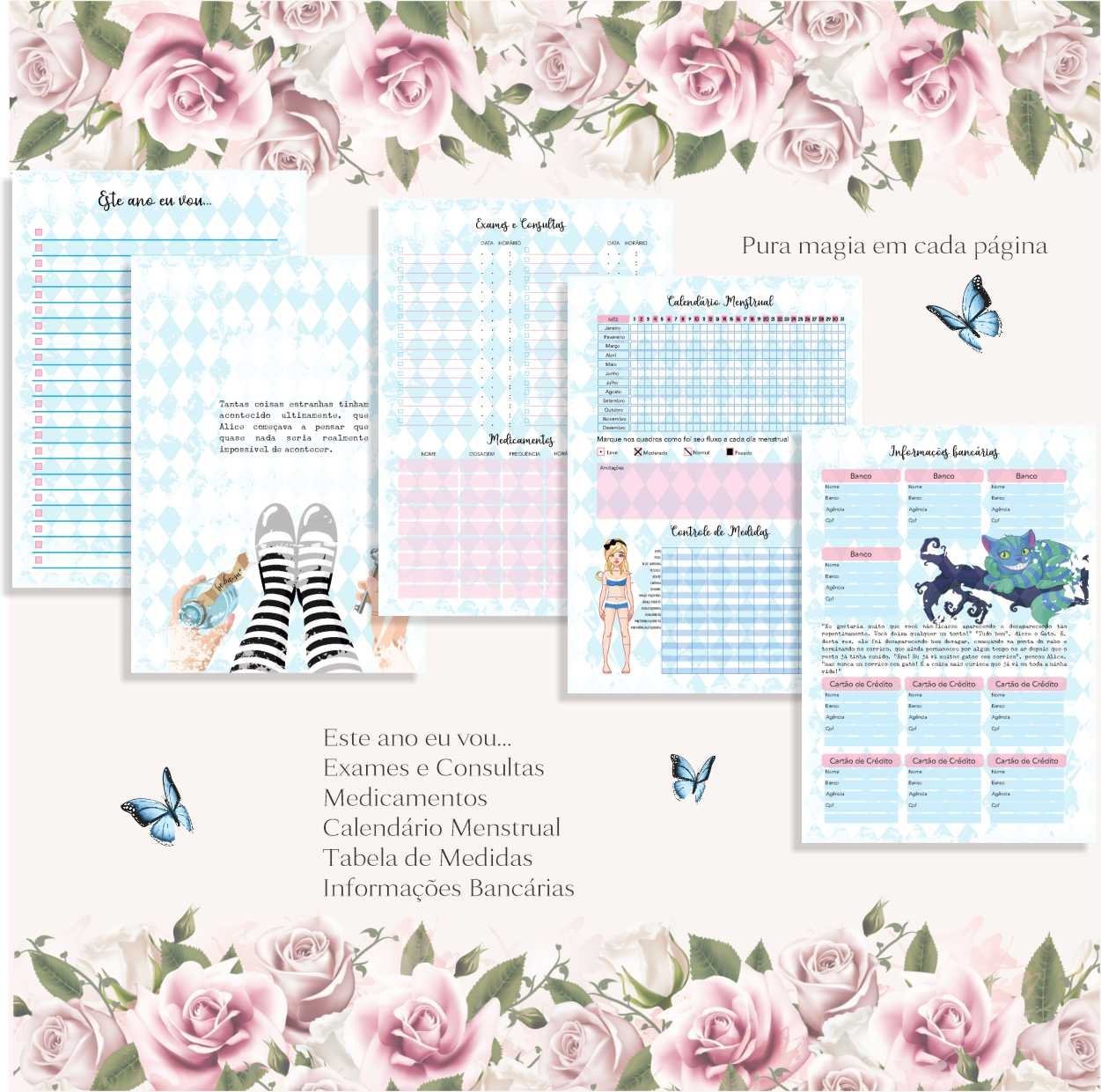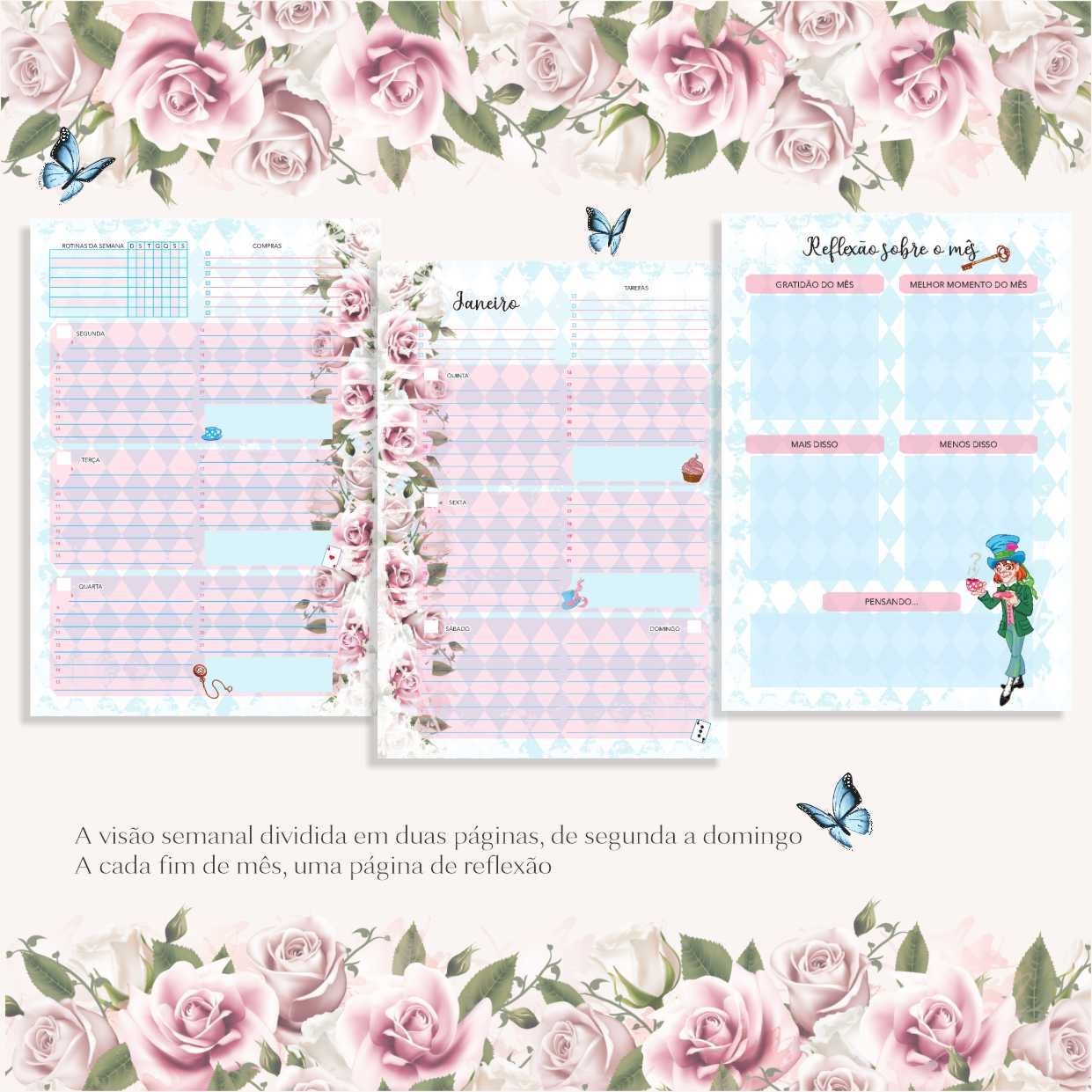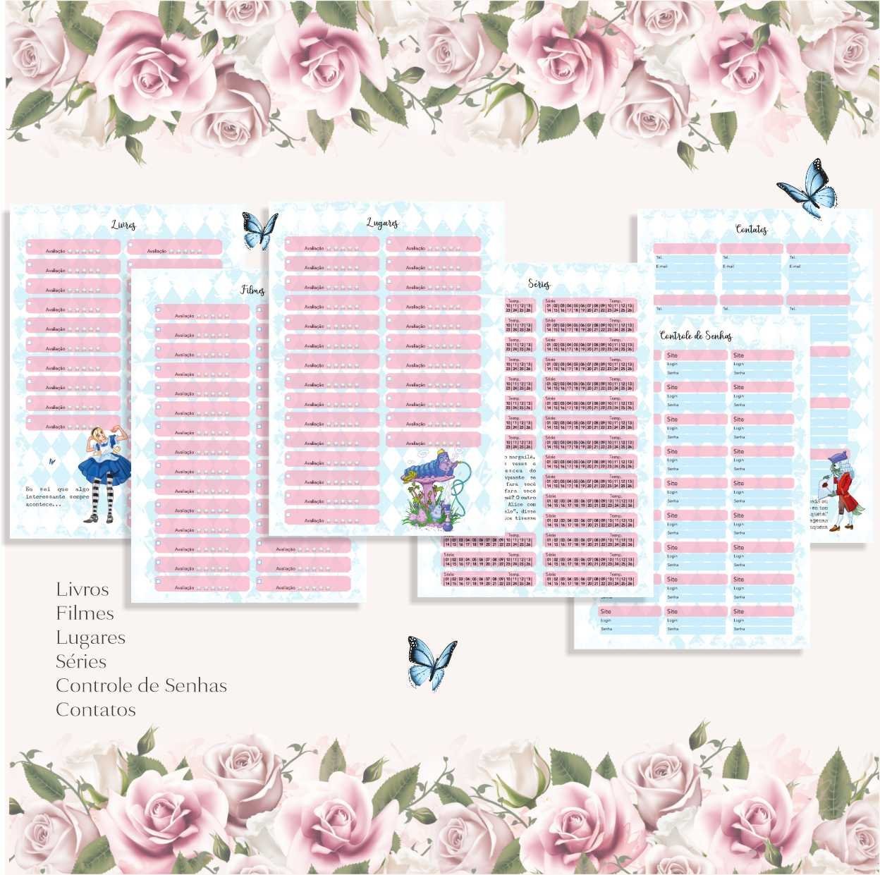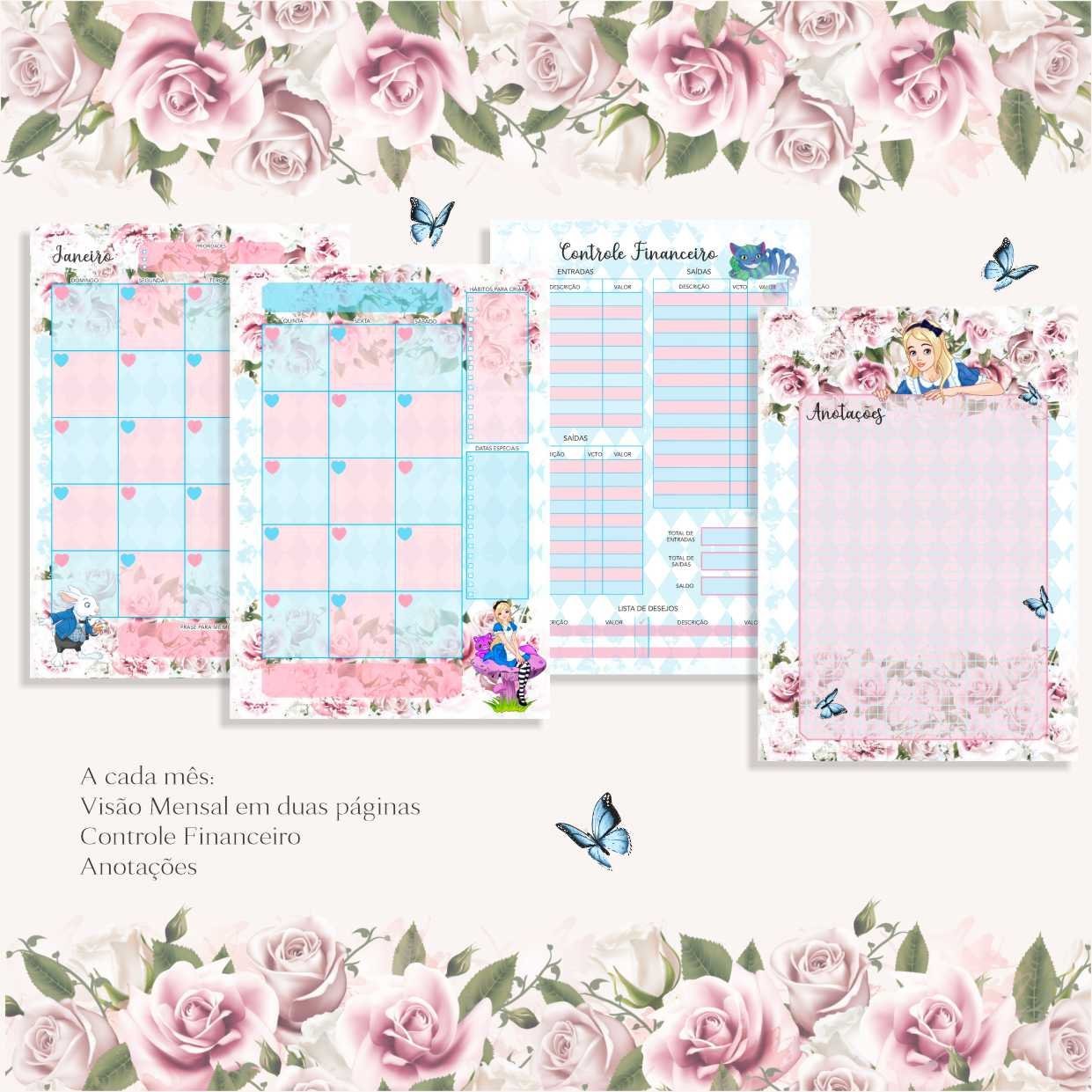 O lindo planner da alice no país das maravilhas contém: