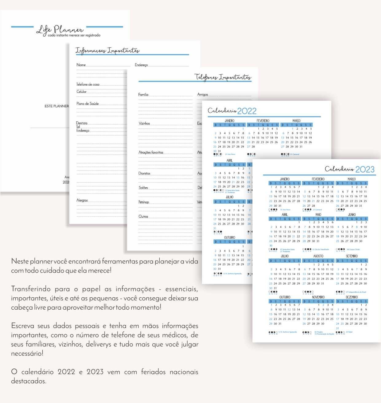 O LIFE Planner Permanente Masculino contém 262 páginas + 12 divisórias na versão Permanente