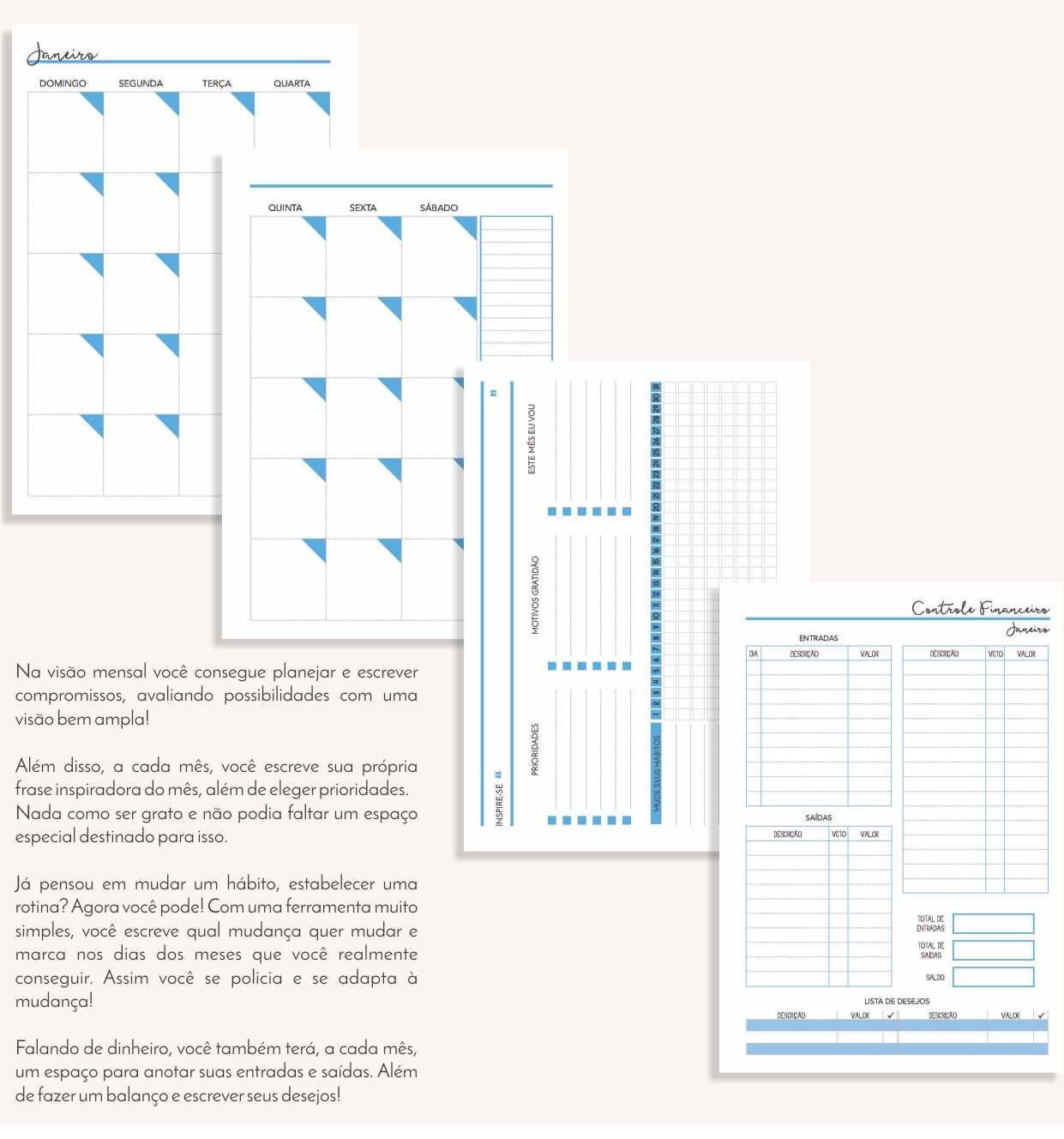 Ótimo para quem quer organizar toda a vida, tem um layout clean e a capa pode ser personalizada