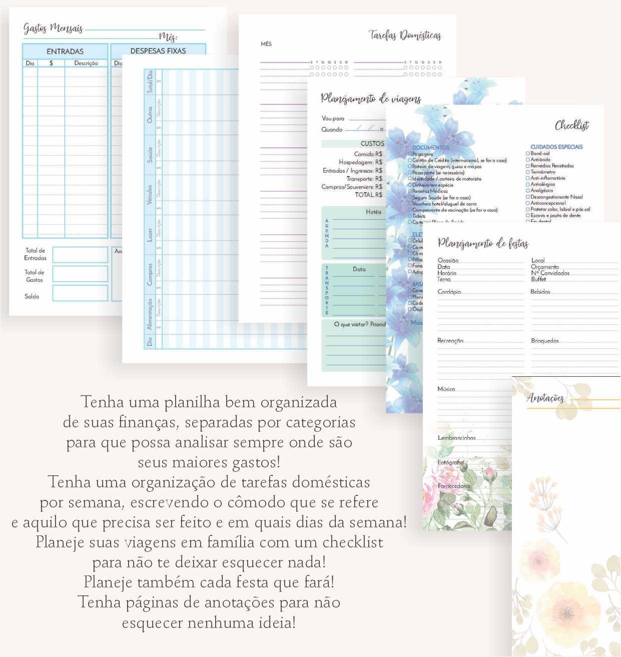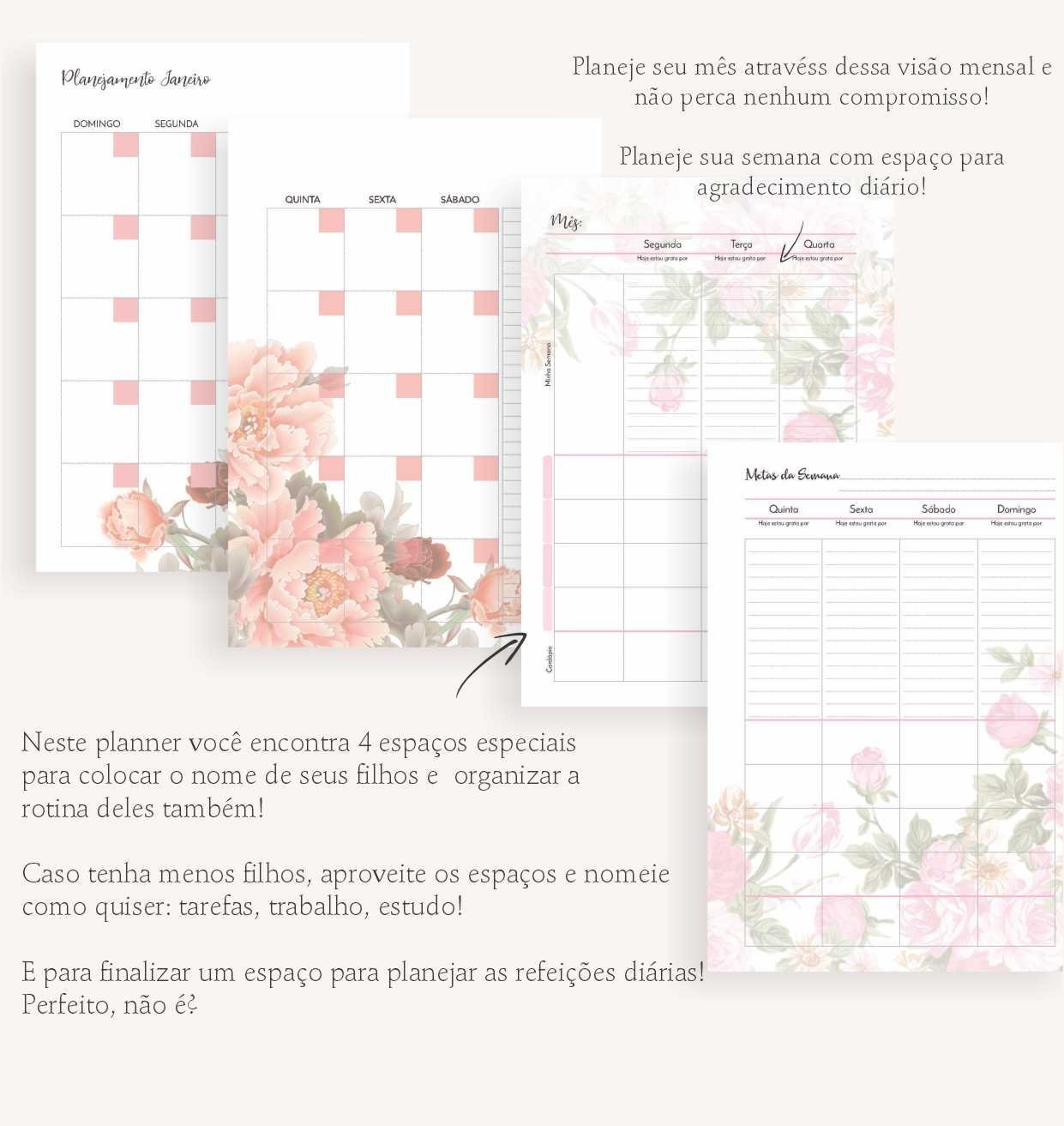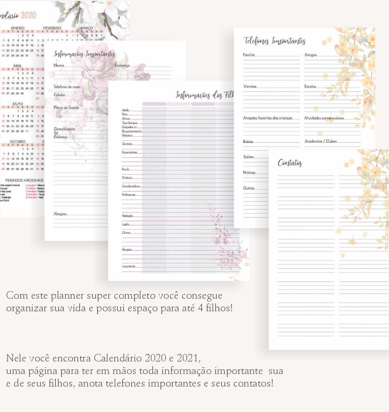 Lindo planner materno floral, ideal para que as mamães organizem sua rotina e deixem a vida mais leve e produtiva, além de possuir um layout lindo e clean.