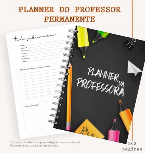 Incrível planner do professor na versão permanente, com 258 páginas.